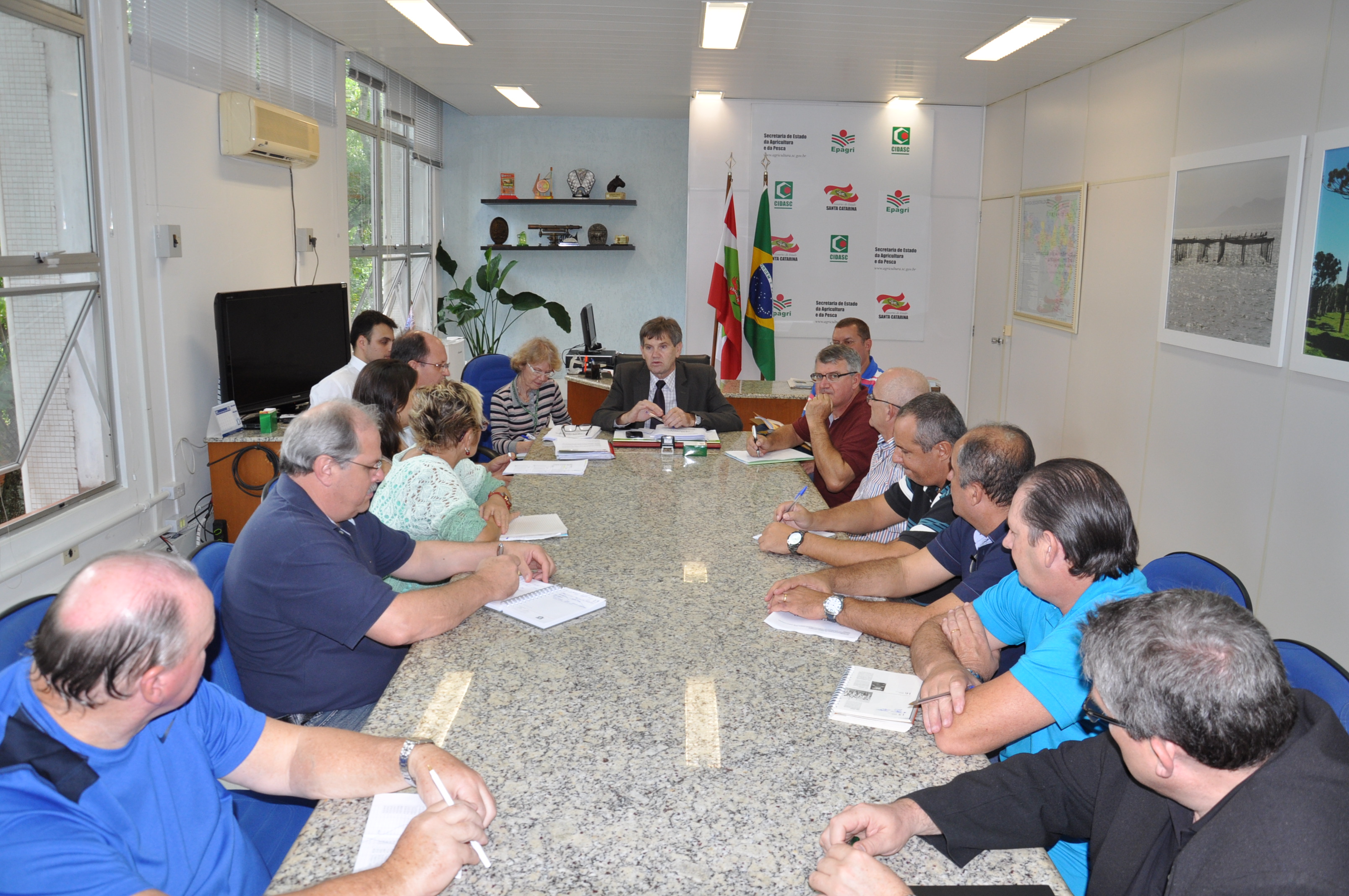 Na tarde de ontem estivemos reunido com o Secretário da Agricultura e as Empresas as ela ligadas (CIDASC e EPAGRI) para tratarmos dos Acordos Coletivos de trabalho.